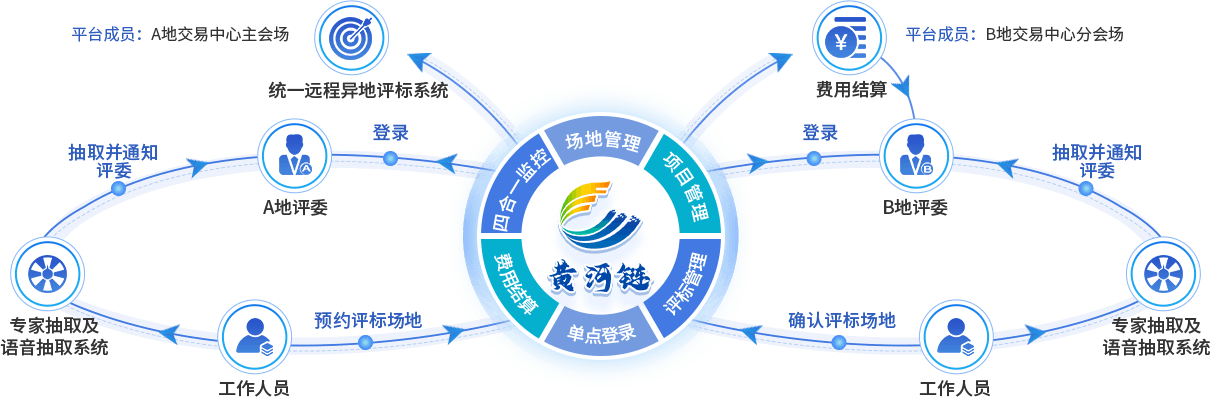 依托互联网信息技术,打破物理时空屏障,通过利用电子招投标软件系统和远程异地评标系统,不同地点的评标专家通过远程电子评标系统,实现在线交流讨论,完成评标工作。同时对黄河流域联盟范围内各地评标室进行属地化管理,并提供协调服务,为全面启动远程异地评标提供了便利。